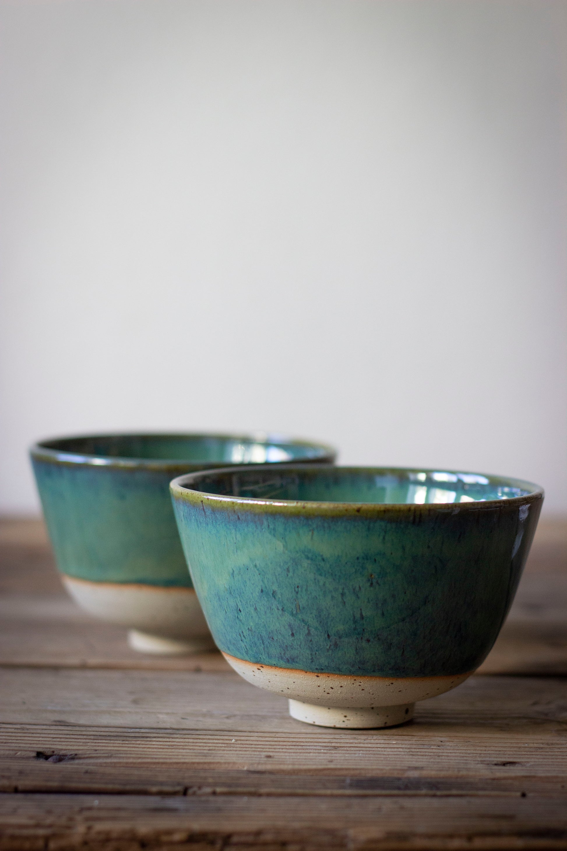 Realizzata al tornio con un’argilla crema puntinata e rifinita con uno smalto verde brillante. Ideale per le vostre colazioni, una zuppa calda, una macedonia di frutta fresca o una sfiziosa coppa di gelato.