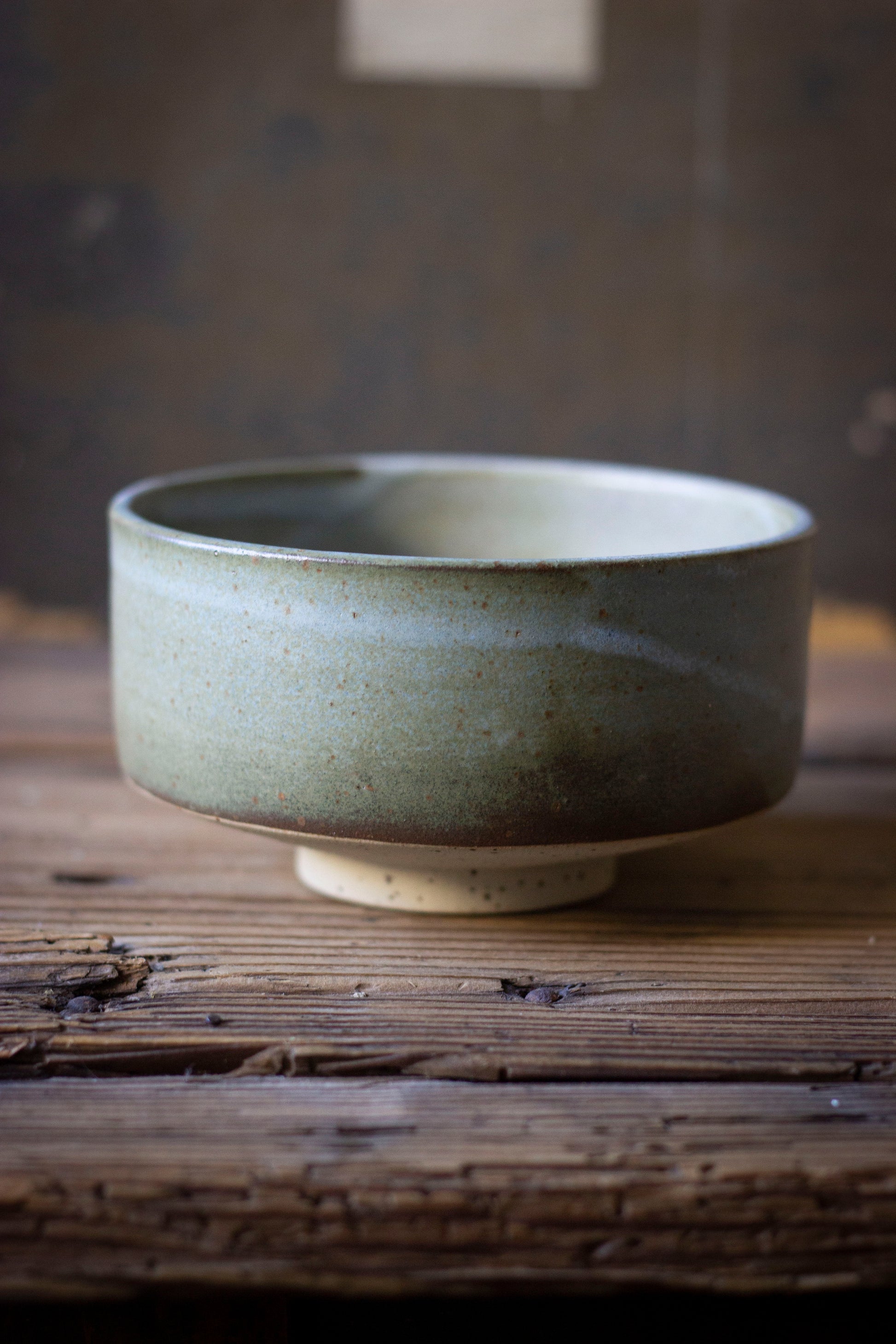 Realizzata al tornio con un’argilla crema puntinata e rifinita con uno smalto verde opaco. Pensata per degustare un ottimo match oppure per le vostre colazioni, una zuppa calda, una macedonia di frutta fresca o una sfiziosa coppa di gelato.