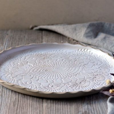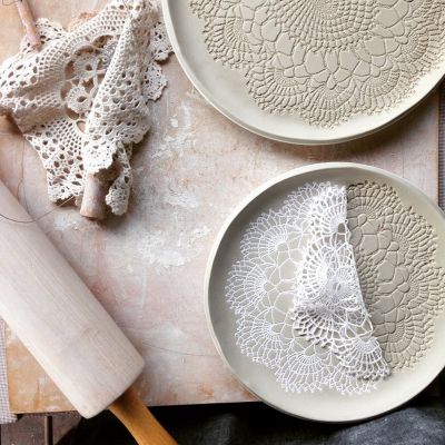 In questa esperienza di due ore attraverso la lavorazione a lastra realizzeremo un set di tre piattini impreziositi da texture date dall'impressione su porcellana di autentici merletti di Burano.