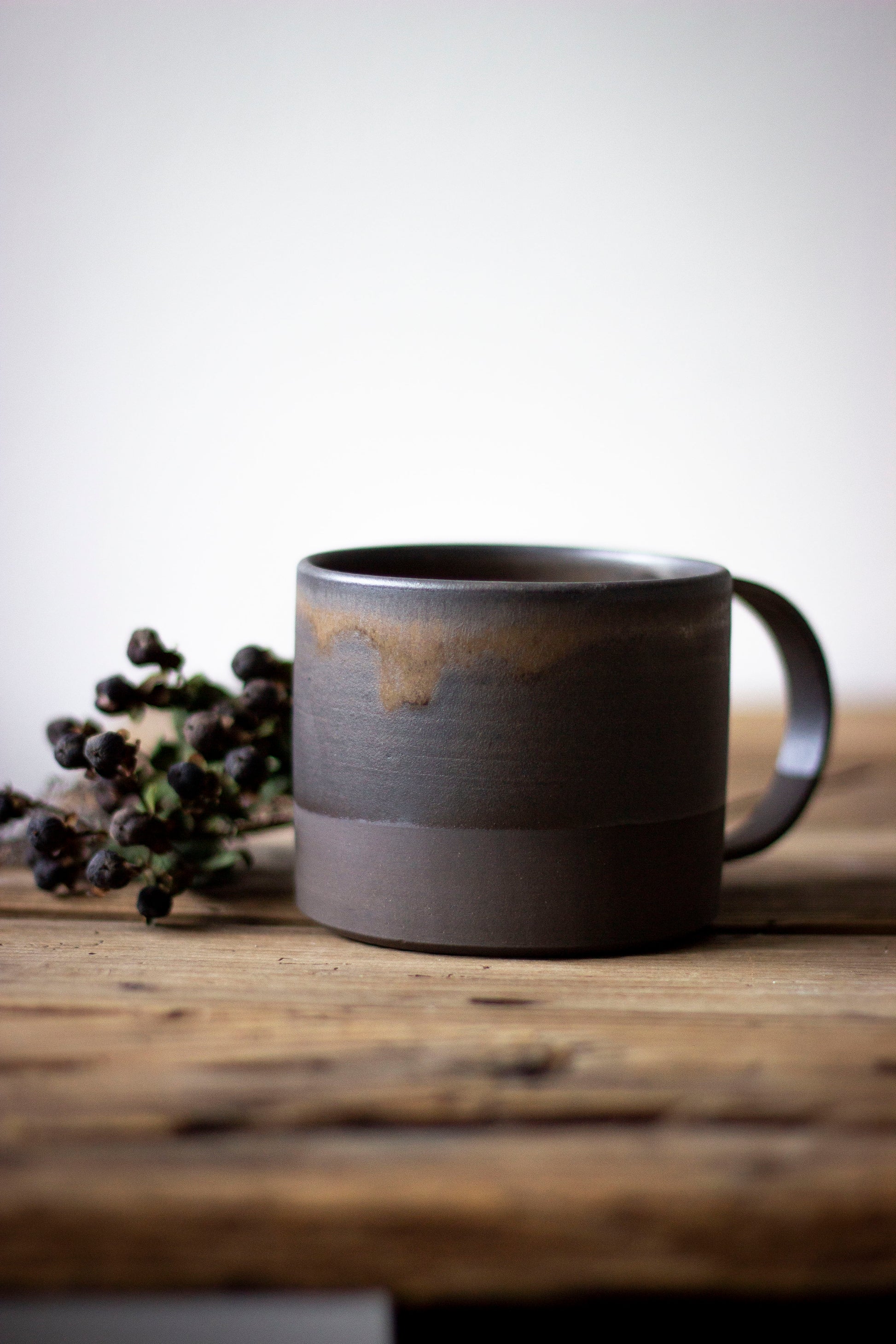 Realizzata al tornio con un’argilla nera vulcanica e rifinita con uno smalto satinato color bronzo. La sua inusuale misura, bassa e larga, la rende perfetta per un cappuccino, o una tazza di tè in compagnia.